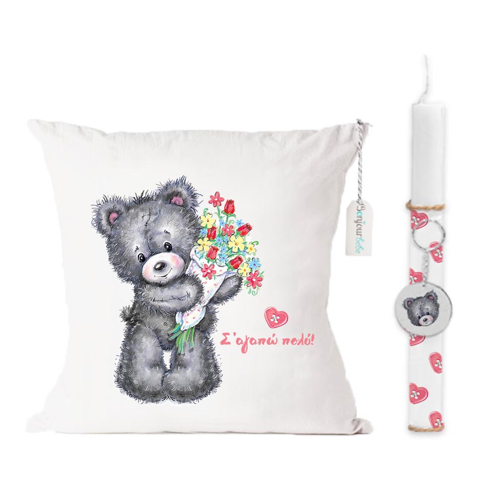 Λαμπάδα με χειροποίητο αξεσουάρ και μαξιλάρι 35*35 cm