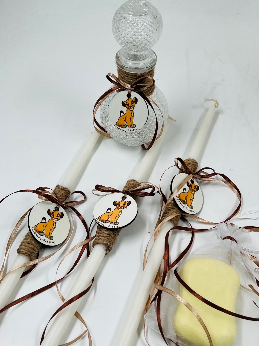 3 κεράκια, βαζάκι και ένα αρωματικό σαπούνι.