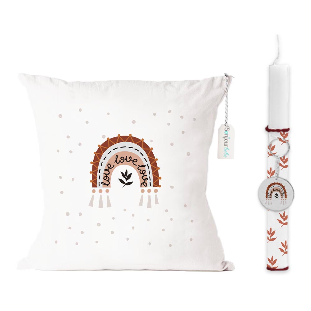Λαμπάδα με χειροποίητο αξεσουάρ και μαξιλάρι 35*35 cm