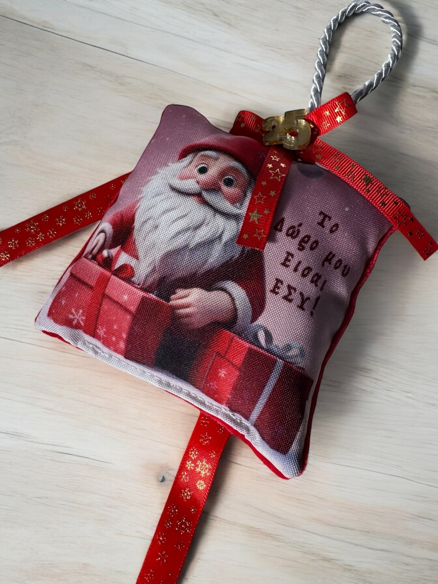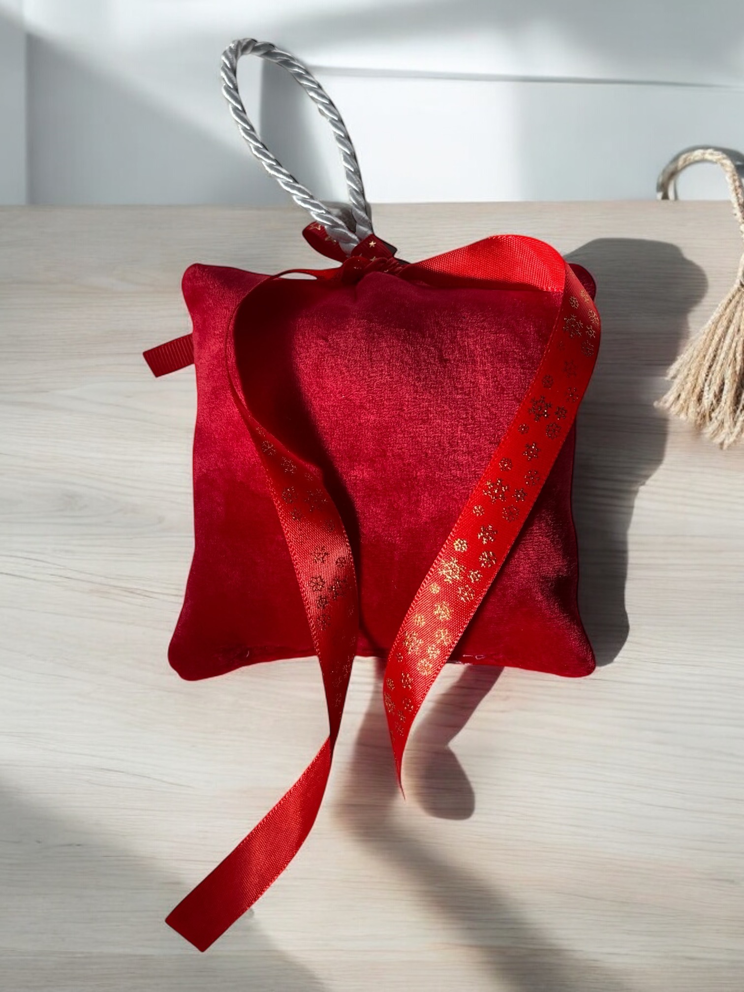 Το χριστουγεννιάτικο γουράκι μαξιλαράκι συνδυάζει την αισθητική, το άρωμα, και τη χρηστικότητα σε μια μοναδική πρόταση δώρου και διακόσμησης. Ιδανικό για το δέντρο αλλά και για την εσωτερική διακόσμηση, αγκαλιάζει τις αισθήσεις και το εορταστικό πνεύμα.
