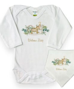 Ξύλινο Αλογάκι “Welcome Baby” (Κορμάκι-Σαλιάρα)